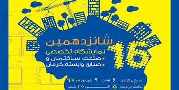 پنجره‌ایرانیان؛ شانزدهمین نمایشگاه صنعت ساختمان و صنایع وابسته کرمان شهریورماه 97 برگزار می‌شود.