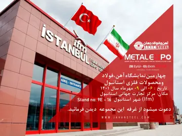پنجره‌ایرانیان؛ شرکت آهن و فولاد جهان از عموم بازدیدکنندگان برای بازدید از غرفه این مجموعه در چهارمین نمایشگاه آهن، فولاد و محصولات فلزی استانبول دعوت به عمل می‌آورد.